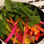 Den Mangold waschen und in grobe Stücke schneiden, Zwiebel und Knoblauch schälen und würfeln. In einer Pfanne Zwiebeln, Mangold und Knoblauch mit etwas Butter ca. 4-5 Minuten rührend anbraten. Dann mit Salz, Pfeffer und Muskatnuss würzen. Beiseitestellen und abkühlen lassen.