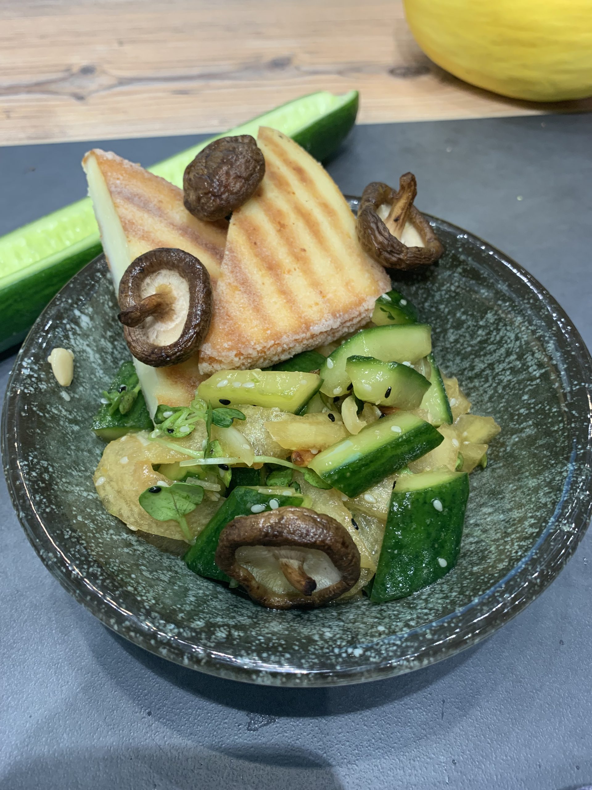 Grillkäse und Pilze in eine Grillpfanne oder auf dem Grill ca. 6-8 Minuten braten.