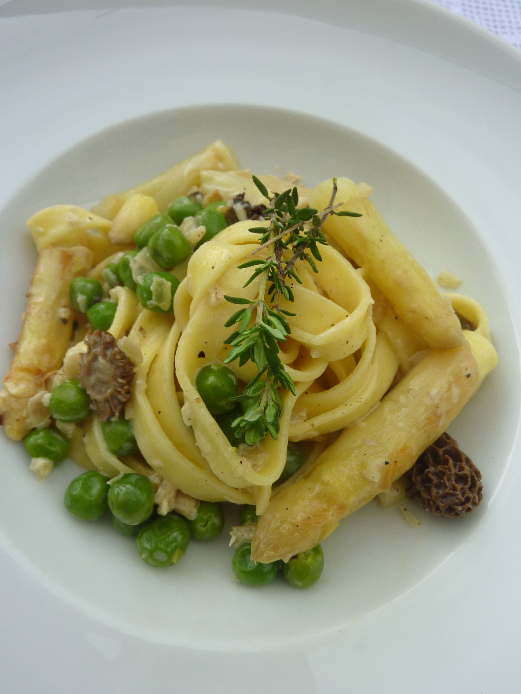 Tipp: die Palerbsen können Sie durch 250 g TK-Erbsen und die frischen Morcheln durch ca. 7 g getrocknete Morcheln (vorher in heißes Wasser einweichen) ersetzen.